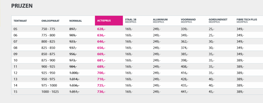 Frames optioneel:luifelframe staal, aluminium, luifelframe EasyGrip